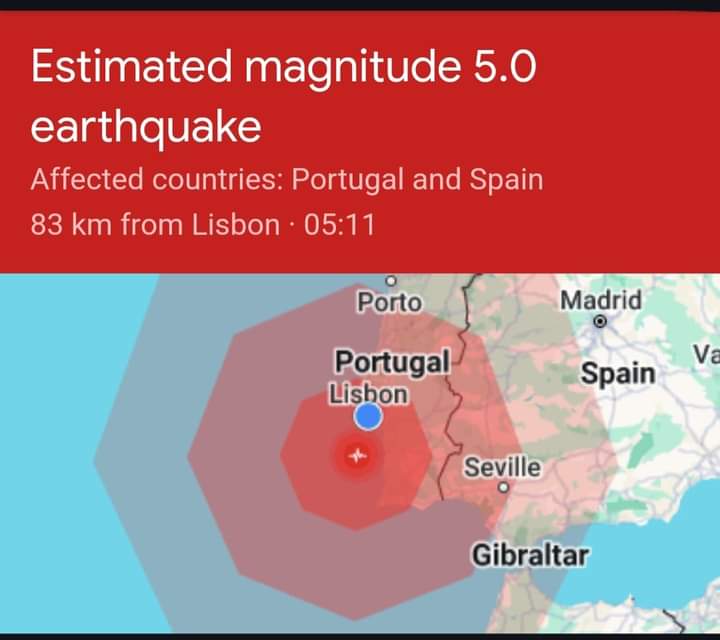 पोर्चुगलमा ५.८ म्याग्निच्युडको भुकम्प ।