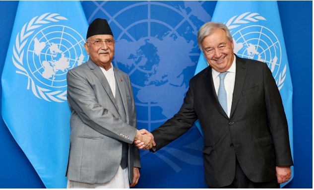 प्रधानमन्त्री ओलीको गुटेरससँग भेट: नेपाल-राष्ट्रसंघ सहकार्यमा छलफल, महासभा सम्बोधन तयारि ।