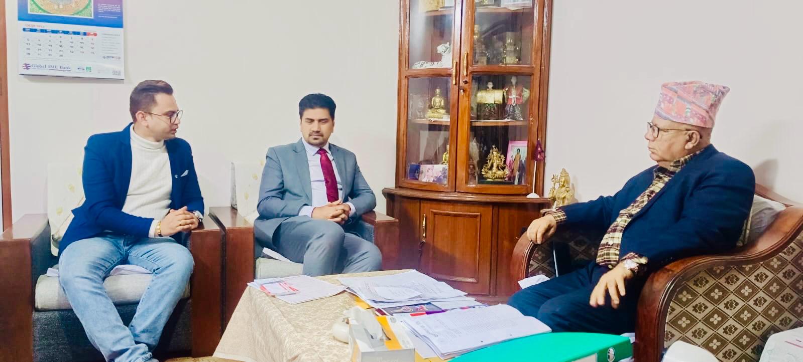 पुर्वप्रधानमन्त्री माधवकुमार नेपाल पोर्चुगलका नवनियुक्त राजदुत सनिल नेपाल र हेल्पडेस्कका बिक्की सुवेदीबिच बैठक र भेटवार्ता सम्पन्न ।