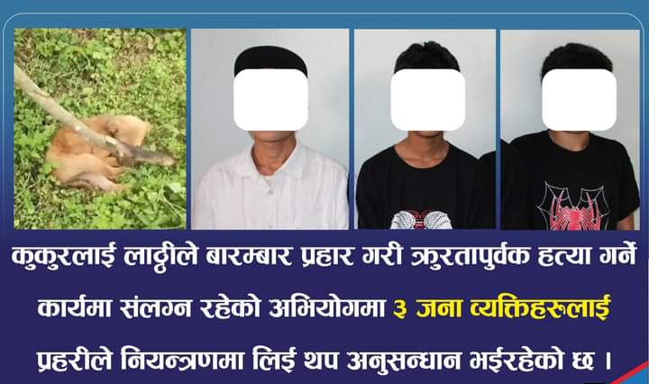 कुकुरलाई क्रुरतापुर्वक लाठी प्रहार गरि हत्या गरेका ब्यक्तिहरु पक्राउ ।
