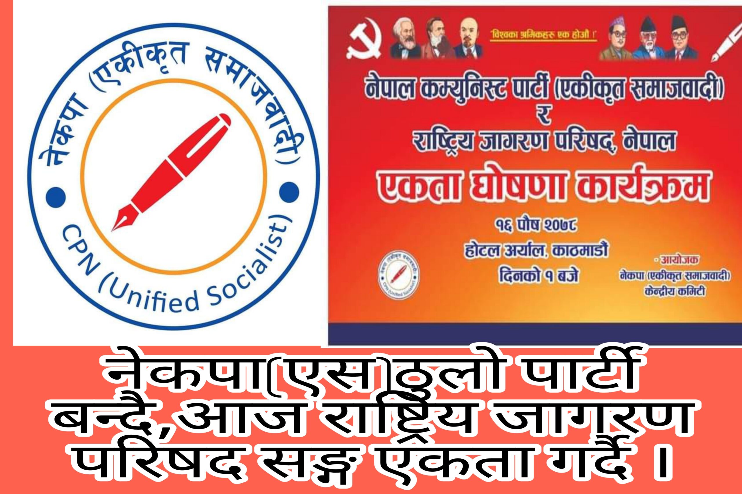 नेकपा एकीकृत समाजवादी ठुलो पार्टी बन्दै,आज फेरि राष्ट्रिय जागरण परिषद सङ्ग एकता गर्दै।