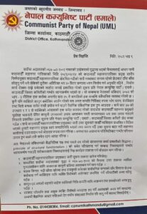 एमालेले महानगरको निर्णय बदर गर्न सातबुँदे माग अघि सारेको छ।