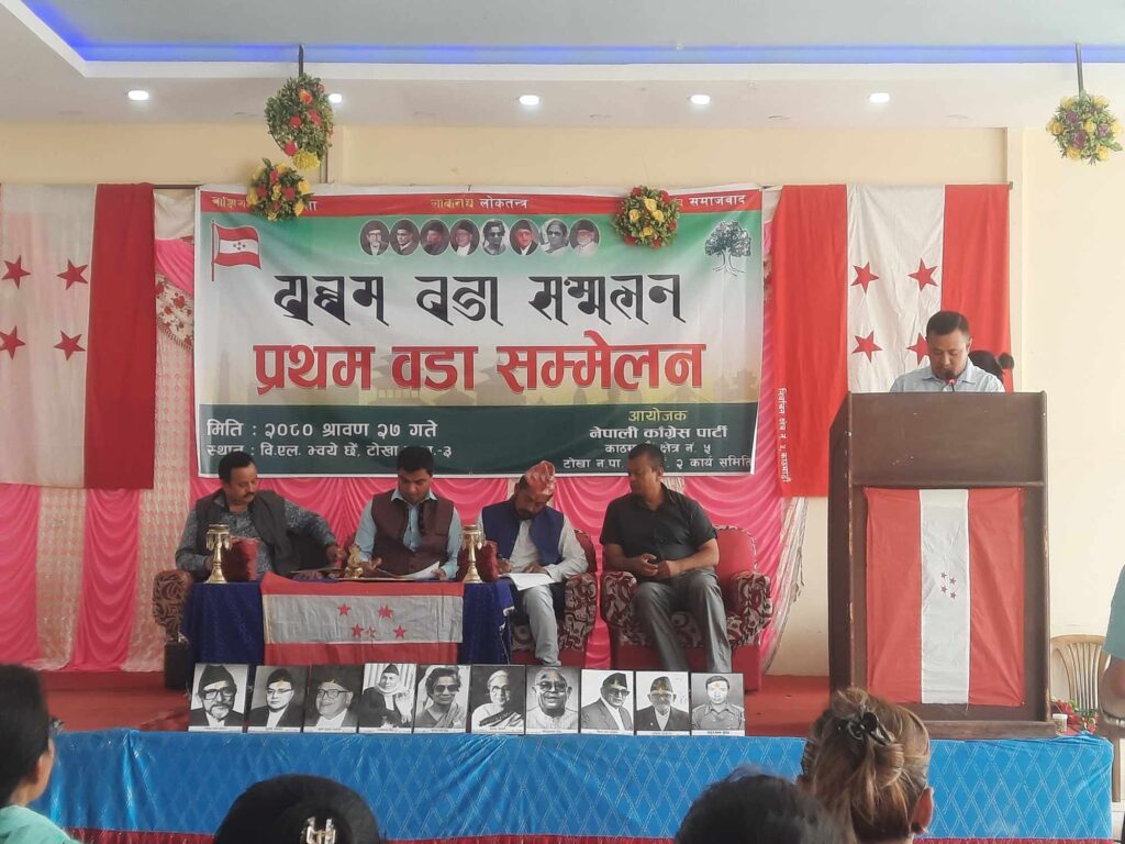 नेपाली कांग्रेस पार्टी काठमाडौ क्षेत्र नम्बर ५ टोखा नगरपालिका वडा नं २ को वडा कार्यसमितिले प्रथम वडा सम्मेलन कार्यक्रम टोखा ३ स्थितमा रहेको बि.एल.भ्वये छेंमा सम्पन्न भएको छ।कार्यक्रमका प्रमुख अथिति क्षेत्र नम्बर ५ का सांसद माननीय प्रदीप पौडेल रहेको थियो भने विशिष्ट अतिथि क्षेत्र नम्बर ५ का सभापति सांसद श्यामबहादुर खड्का रहेको थियो। कार्यक्रमका सभापति तथा वडा २ का इकाई सभापति हेराकाजी महर्जन डंगोलको सभापतित्वमा कार्यक्रम गरेको थियो भने वडा कार्य समितिका सचिव विकास श्रेष्ठले कार्यक्रम सञ्चालन गरेको हो।