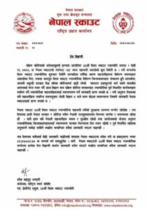 २५औं विश्व स्काउट ज्याम्बोरीको सम्बन्धमा नेपाल स्काउटको प्रेस विज्ञप्ती निकालेको छ। अगस्ट १ देखी १२, २०२३, मा दक्षिण कोरीयाको झोल्लाबुक्दो प्रान्तमा आयोजित भएको ज्याम्बोरी कार्यक्रममा नेपाल स्काउटको तर्फबाट १६८ जाना सहभागी भइरहेको थियो ।यसै सन्दर्भमा विश्व स्काउट ज्याम्बोरीमा सुरुवात देखीनै अत्याधिक गर्मीका कारण सहभागीहरुमा बिभिन्न समस्याहरु आइरहेको र जसका बाबजुद विश्व स्काउट ज्याम्बोरीका बिभिन्न क्रियाकलापहरु संचालन हुदै आएकोमा, जापानी समुन्द्री तटबाट तिब्र गतिमा कोरीयातर्फ बढ्दै गरेको ‘खानउन टाइफुन’ले पार्न सक्ने संभावीत असरलाई मध्य नजर गर्दै सोमबारको बिहान मात्र दक्षिण कोरीया सरकारबाट ज्याम्बोरीका पुर्व निधारीत कार्यक्रमहरु स्थगित गर्दै ज्याम्बोरीका सहभागीहरुलाई स्थानान्तरण गर्ने जानकारी प्राप्त भएको नेपाल स्काउटका राष्ट्रिय संयोजक लोक बहादुर भण्डारीले जनाएको छ।
