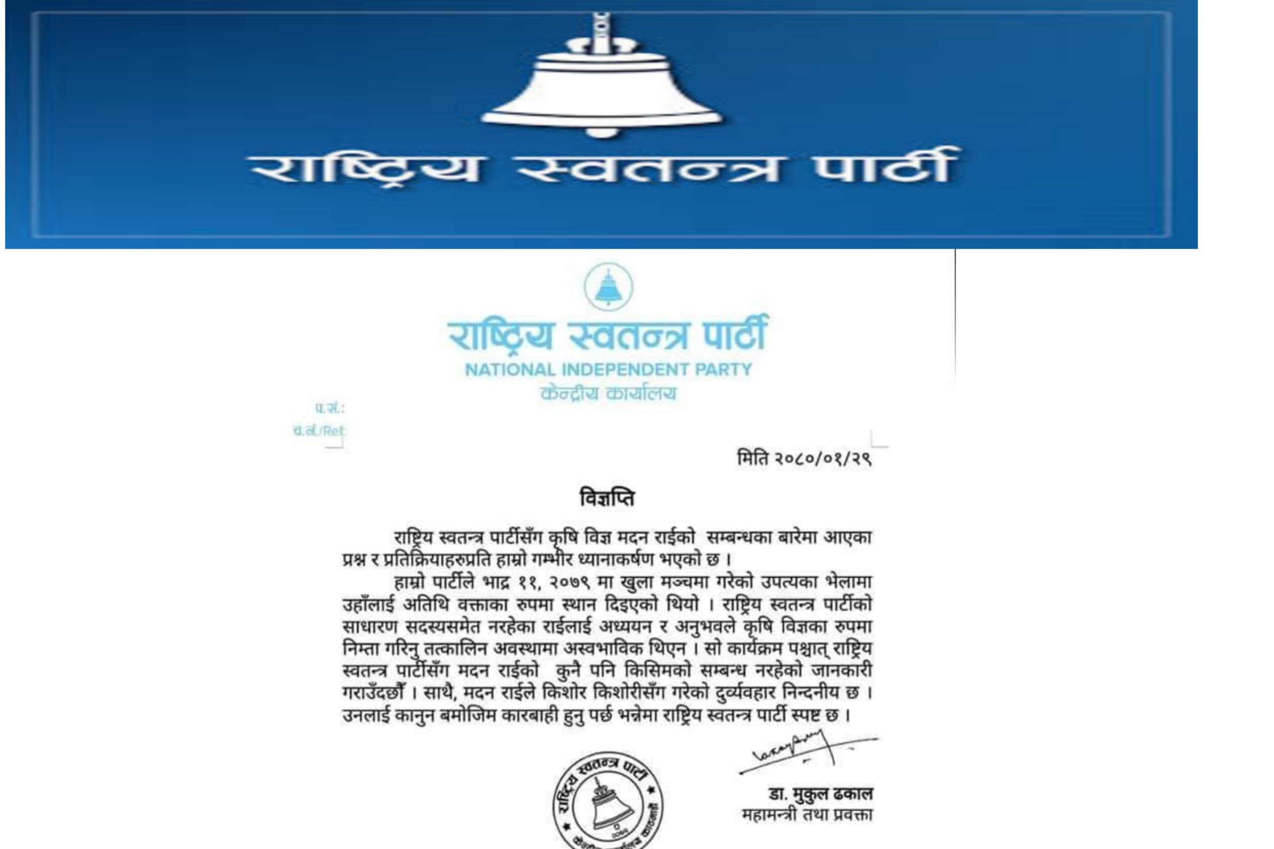 मदन राई रास्वपाको साधारण सदस्य नरहेको भनी विज्ञप्ति जारी ।