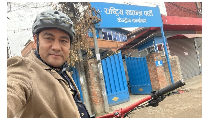 साइकल चढेको यात्री रास्वपाको कार्यलयमा प्रवेश निषेध गरेको भन्दै विश्व साइकल यात्रीको गुनासो ।