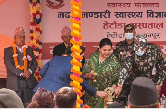 राष्ट्रपति विद्यादेवी भण्डारी हेटौंडा अस्पताल उद्घाटनका लागि आइपुग्नुभयो ।