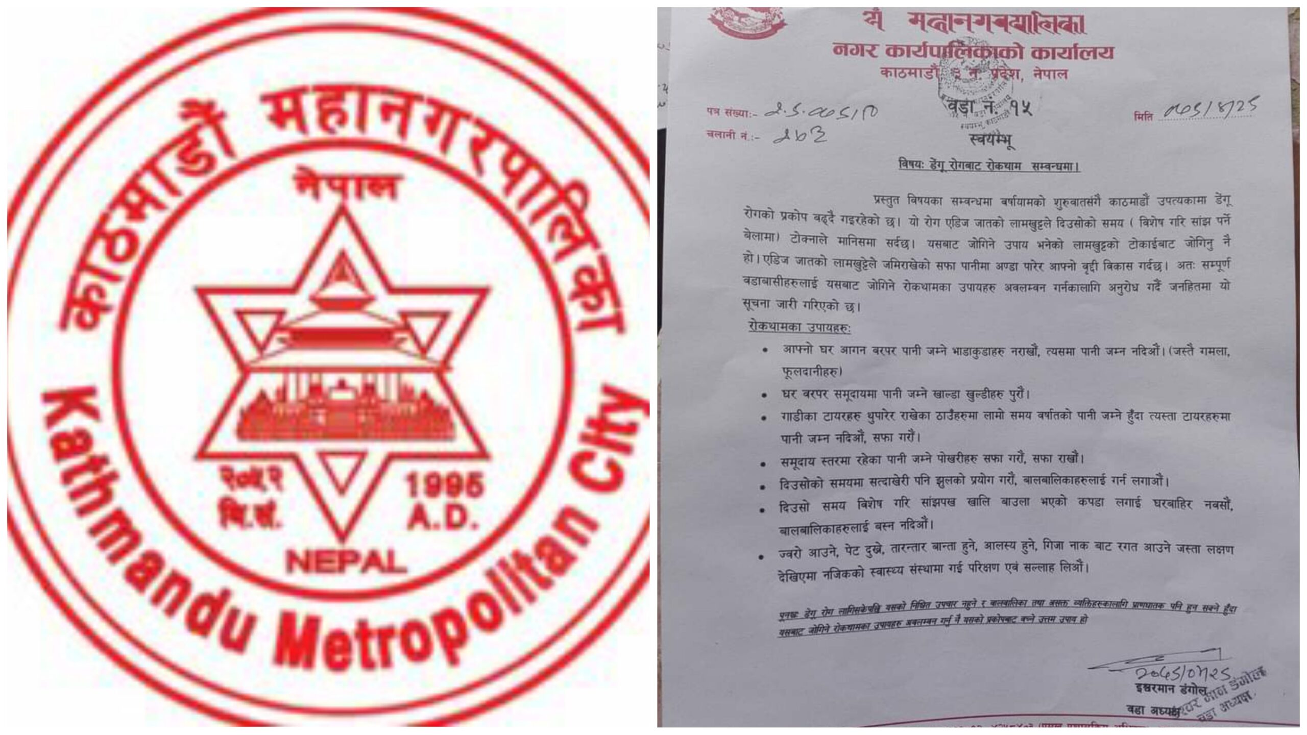 का.म.पा १५ द्वारा डेंगूरोगको रोकथाम सम्वन्धमा सूचना जारी ।