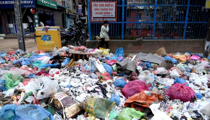 काठमाडौको मुख्य सडकमा फोहोर नउठ्दा नागरिकलाई आवतजावतमा समस्या ।