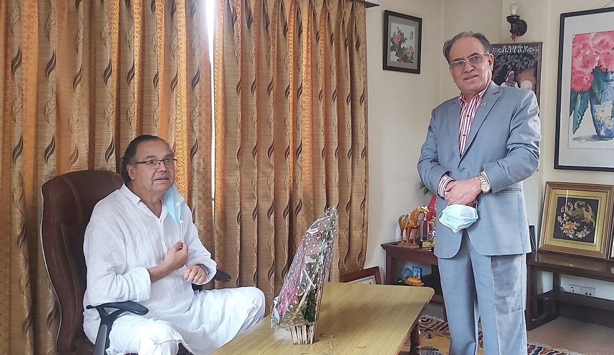 झलनाथ खनाललाई भेट्न प्रचण्ड पुगे डल्लु