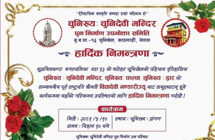 चुनिखेलका ऐतिहासिक धरोहरहरूको उद्घाटनमा पूर्वराष्ट्रपति भण्डारीको उपस्थिति ।