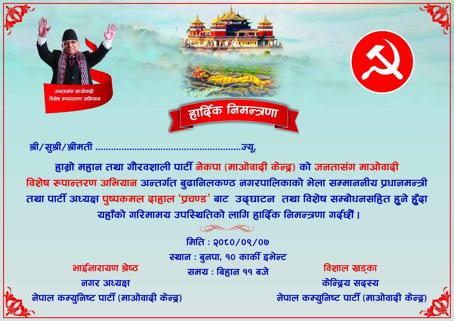 बूढानीलकण्ठमा माओवादी केन्द्रद्वारा प्रधानमन्त्रीको प्रमुख आतिथ्यमा विशेष रुपान्तरण अभियान हुँदै ।