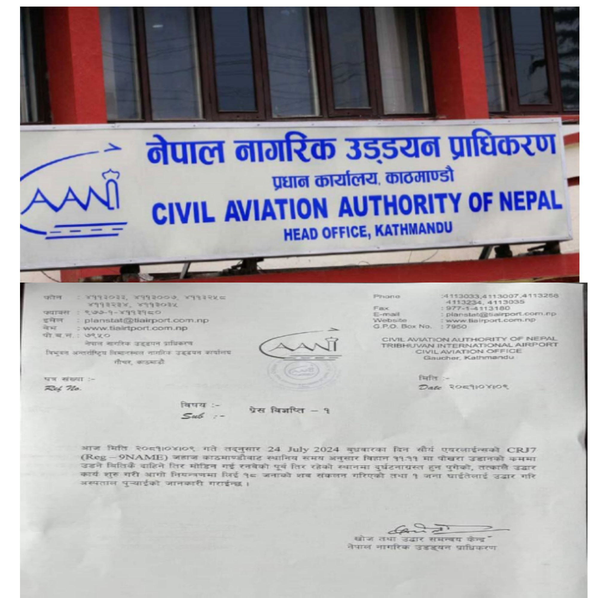 नागरिक उड्डयन प्राधिकरणले जारी गर्यो सुचना, आगलागी नियन्त्रण १८ जनाको शब संकलन ।