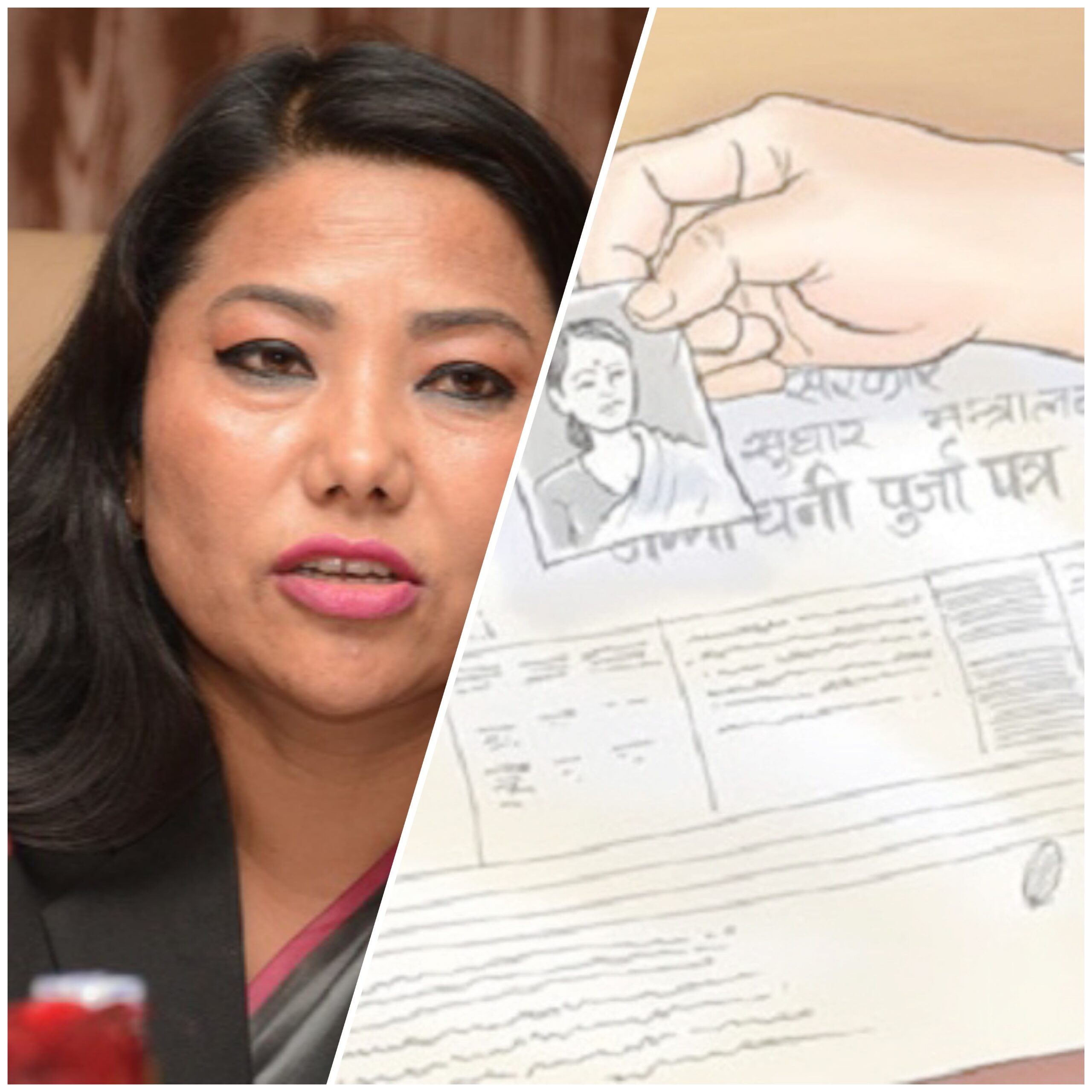 शहरी विकास मन्त्री रामकुमारी झाँक्रीद्वारा नवलपरासीमा लालपुर्जा वितरण गर्दै ।